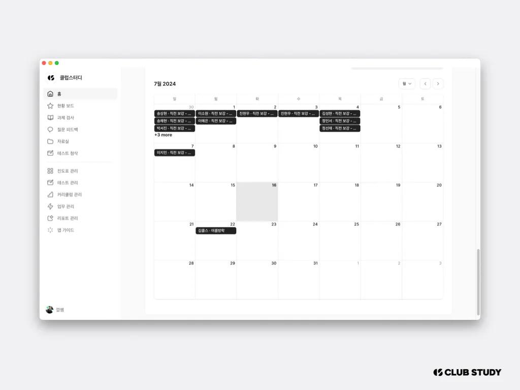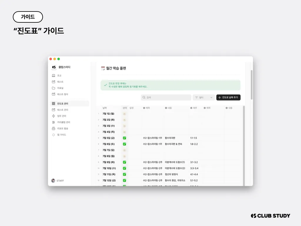 멤버의 매일 학습 내용을 담은 진도표를 작성해요.