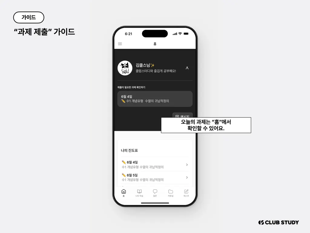 매일 나만의 학습 진도표를 따라 “과제”를 제출해요.