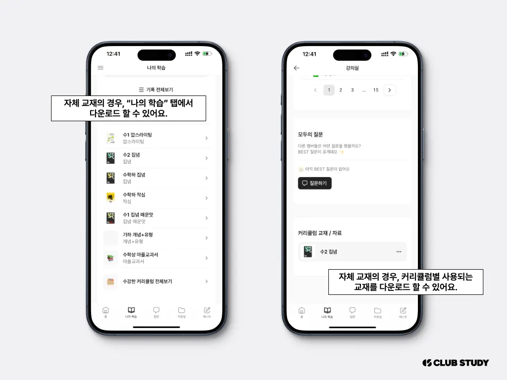 앱(APP)의 “자료실” 탭, “나의 학습-강의실” 탭에서 확인할 수 있어요.