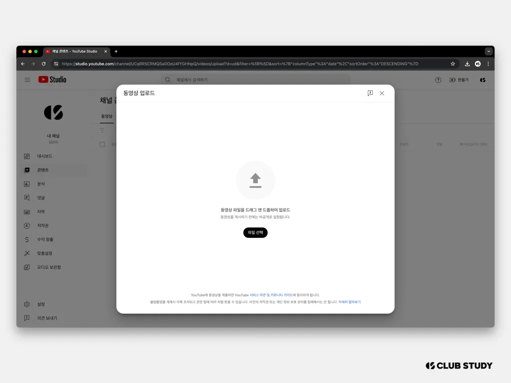동영상 업로드 페이지에서 ‘파일 선택’ 버튼 클릭