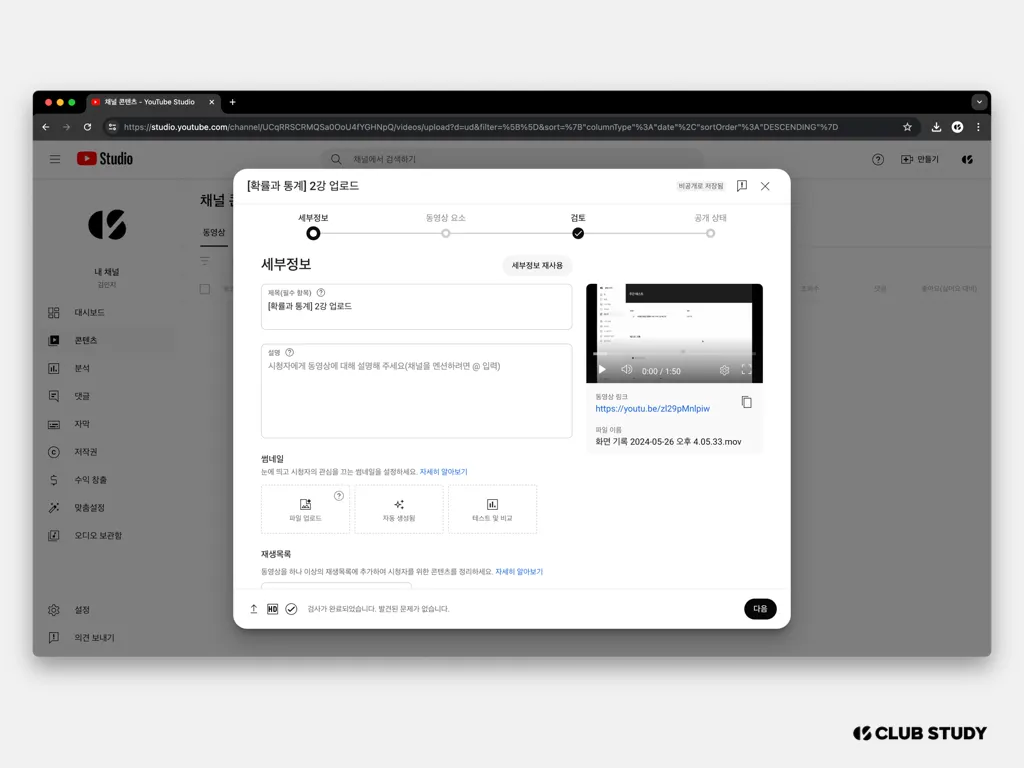 유튜브 영상 업로드 및 클럽스터디 앱 영상 임베드 살펴보기