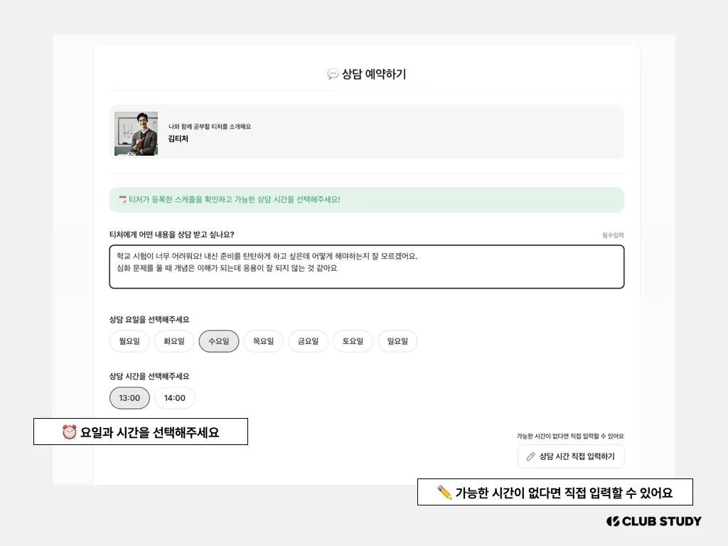 테스트 난이도 선택/응시, 티처 상담 예약이