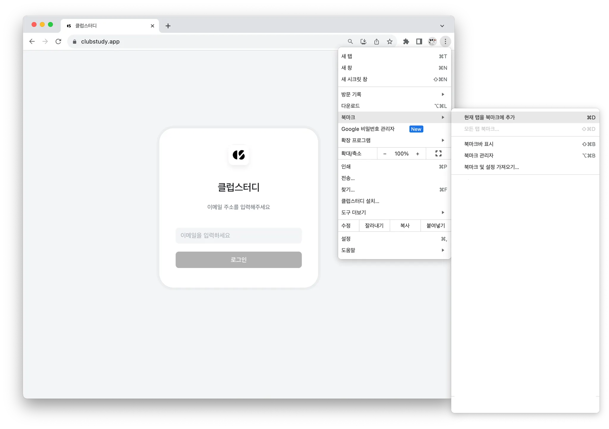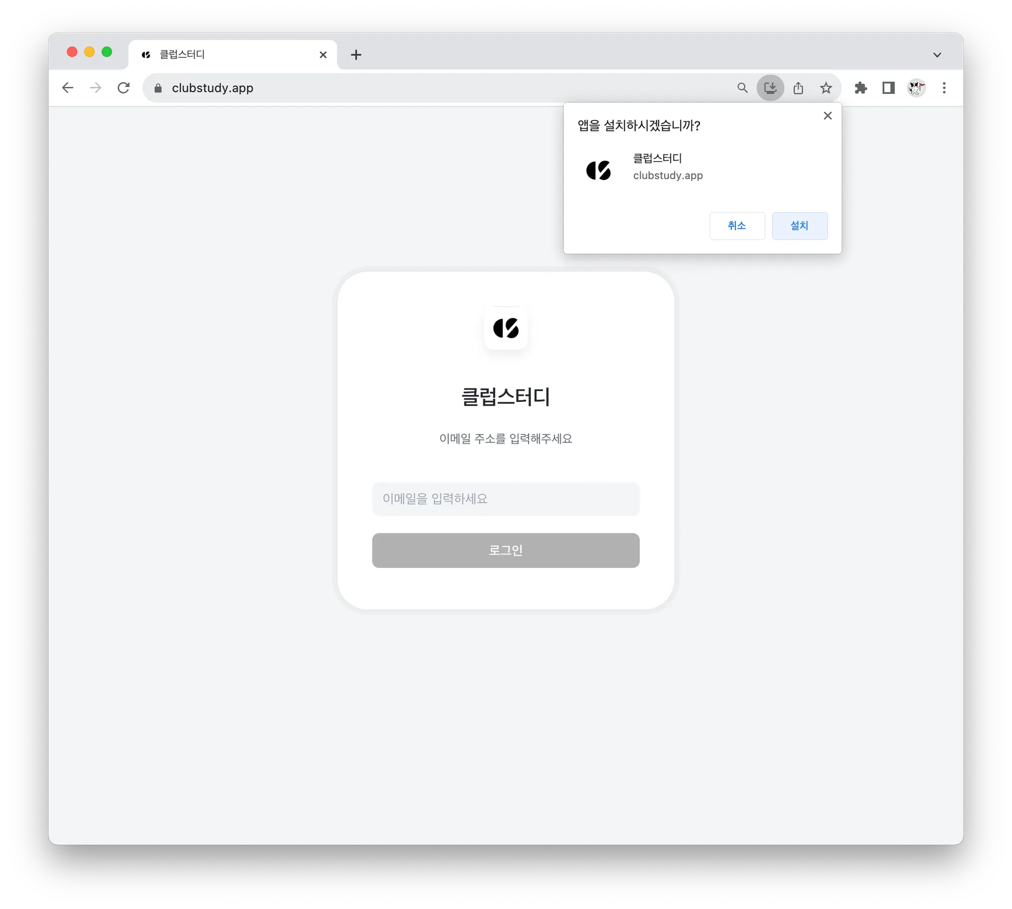2. 클럽스터디 앱 링크 https://clubstudy.app 을 입력해주세요.