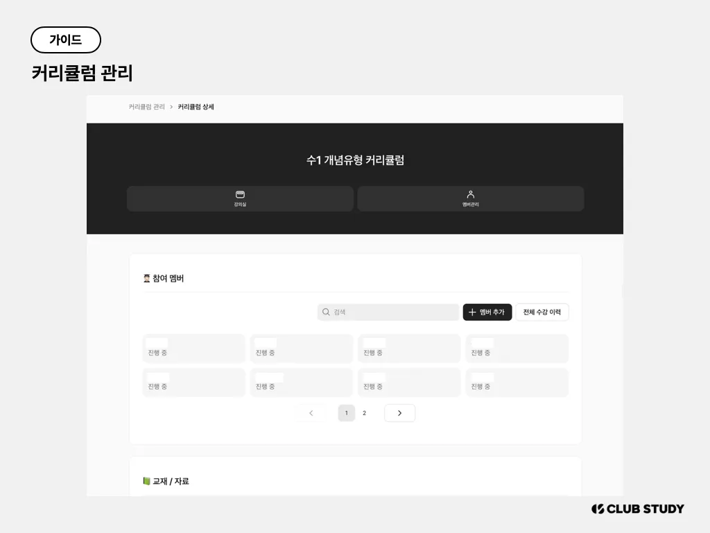 커리큘럼 생성을 완료한 후 멤버를 추가할 수 있어요.