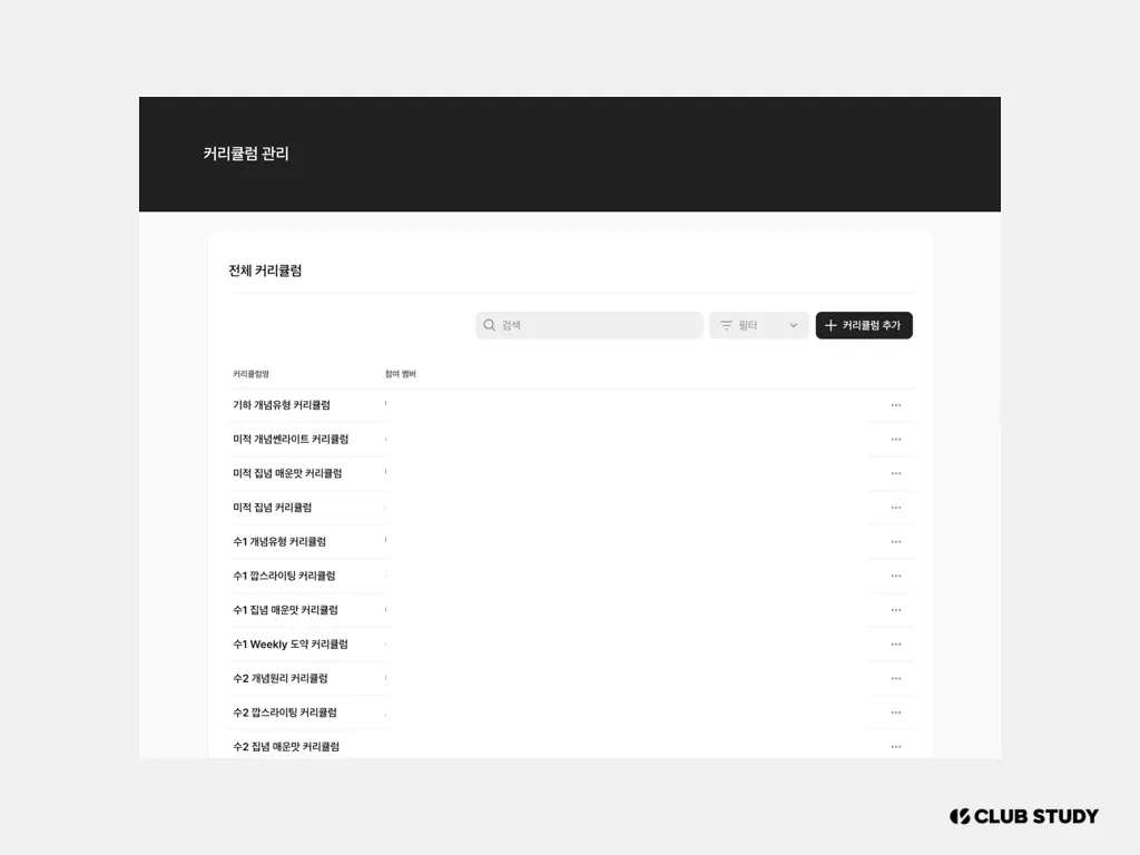 커리큘럼을 생성한 후 멤버를 추가할 수 있어요