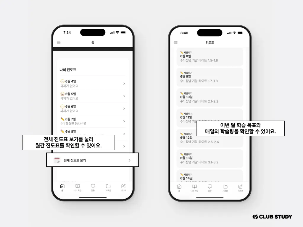 “전체 진도표 보기” 버튼을 눌러 월간 진도표를 확인하세요.