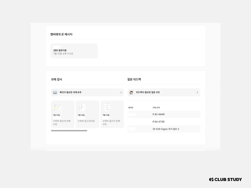 멤버가 제출한 과제와 질문을 확인해보세요.