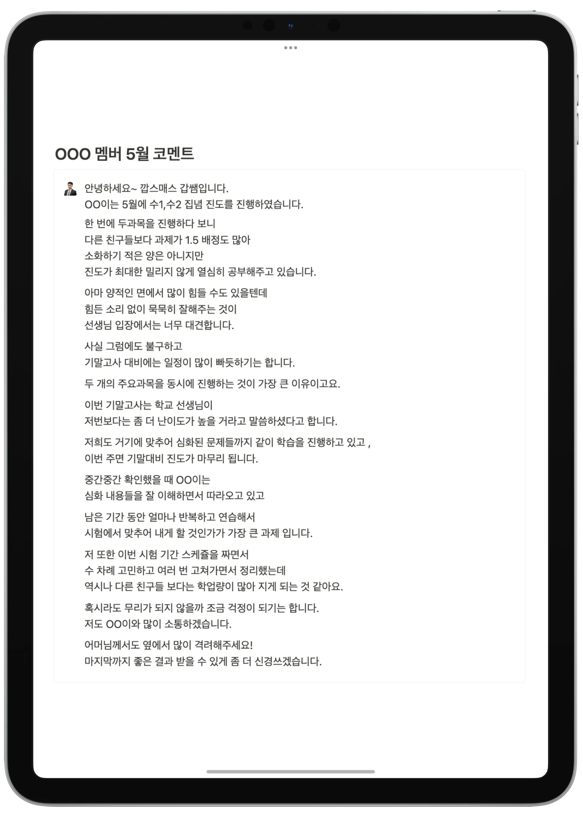 학생의 상황에 맞게 개별적인 학습 자료를 제공하여 필요한 부분을 효율적으로 학습하고, 부족한 부분을 효과적으로 채워나갈 수 있다. |