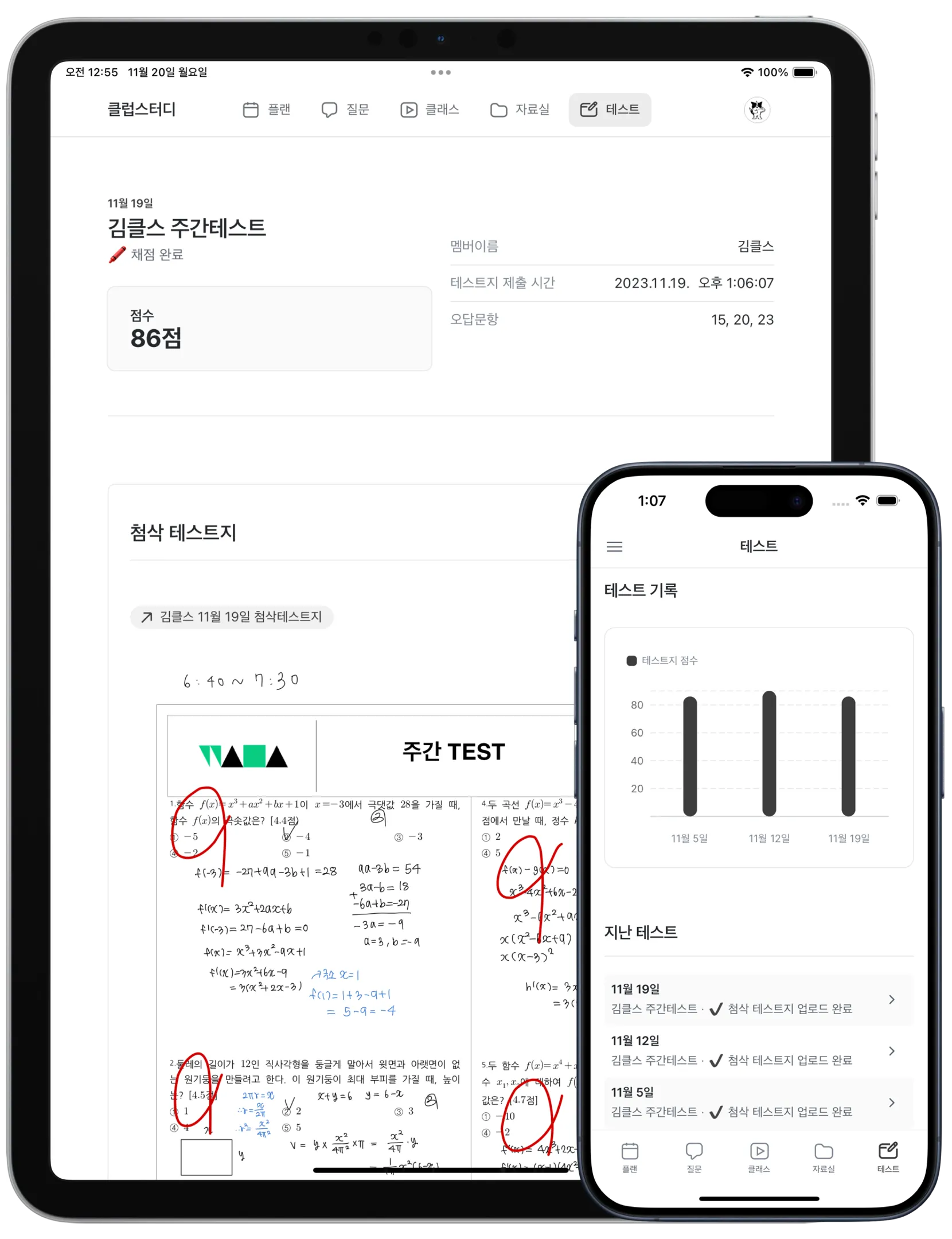 매주 개별 복습 테스트를 통해 주간 학습 상황을 점검한다.