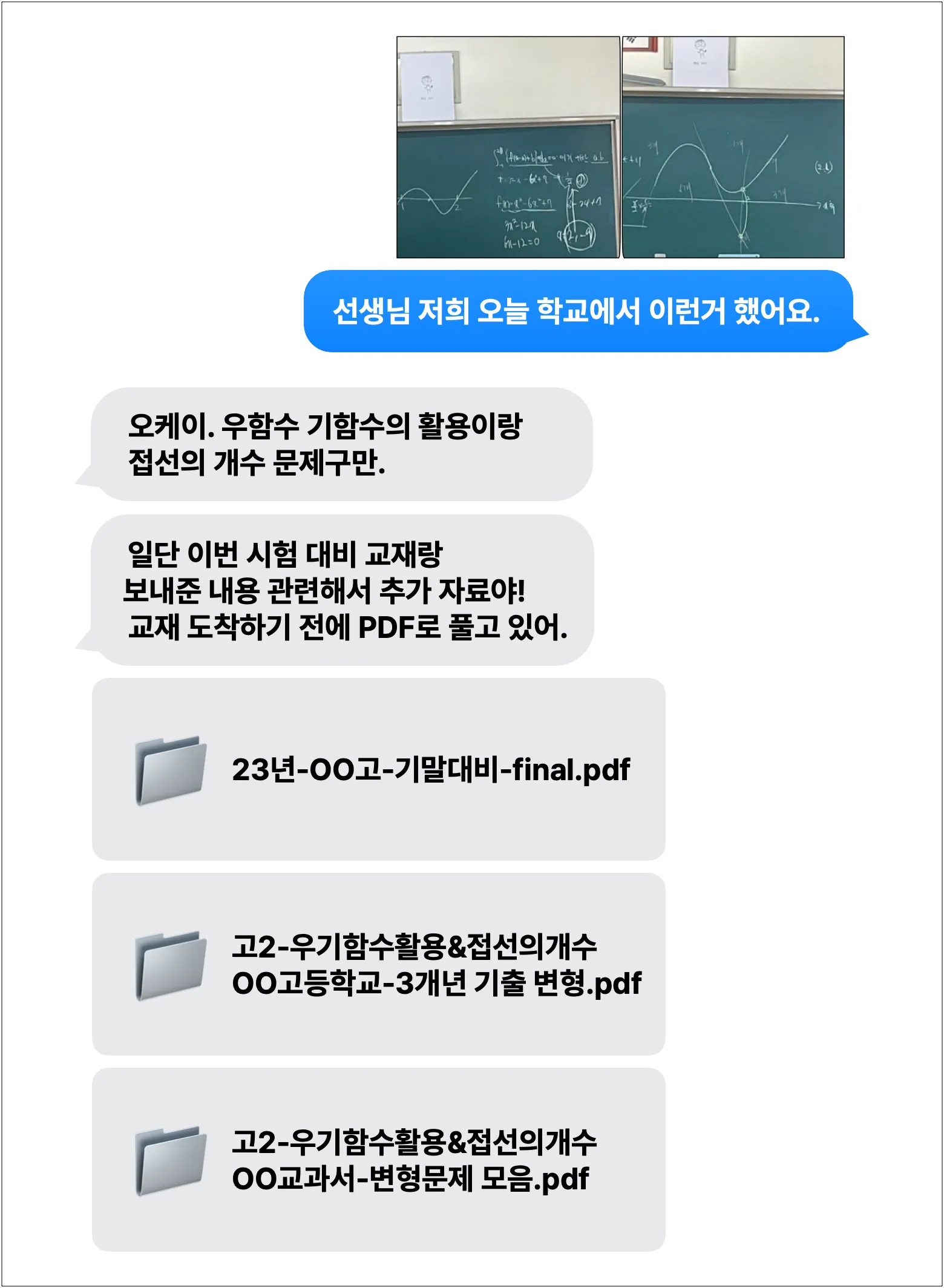 내신 대비, 심화 유형 연습 등