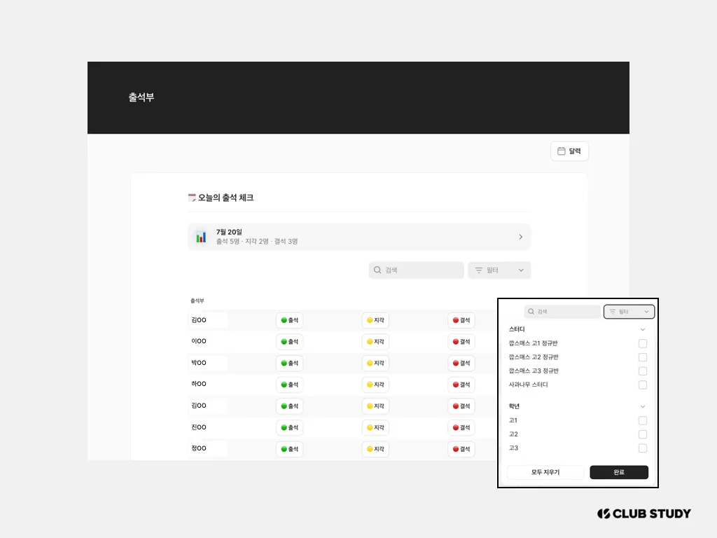 매일 과제 검사, 진도 관리, (필요시) 자료 업로드를 진행합니다.