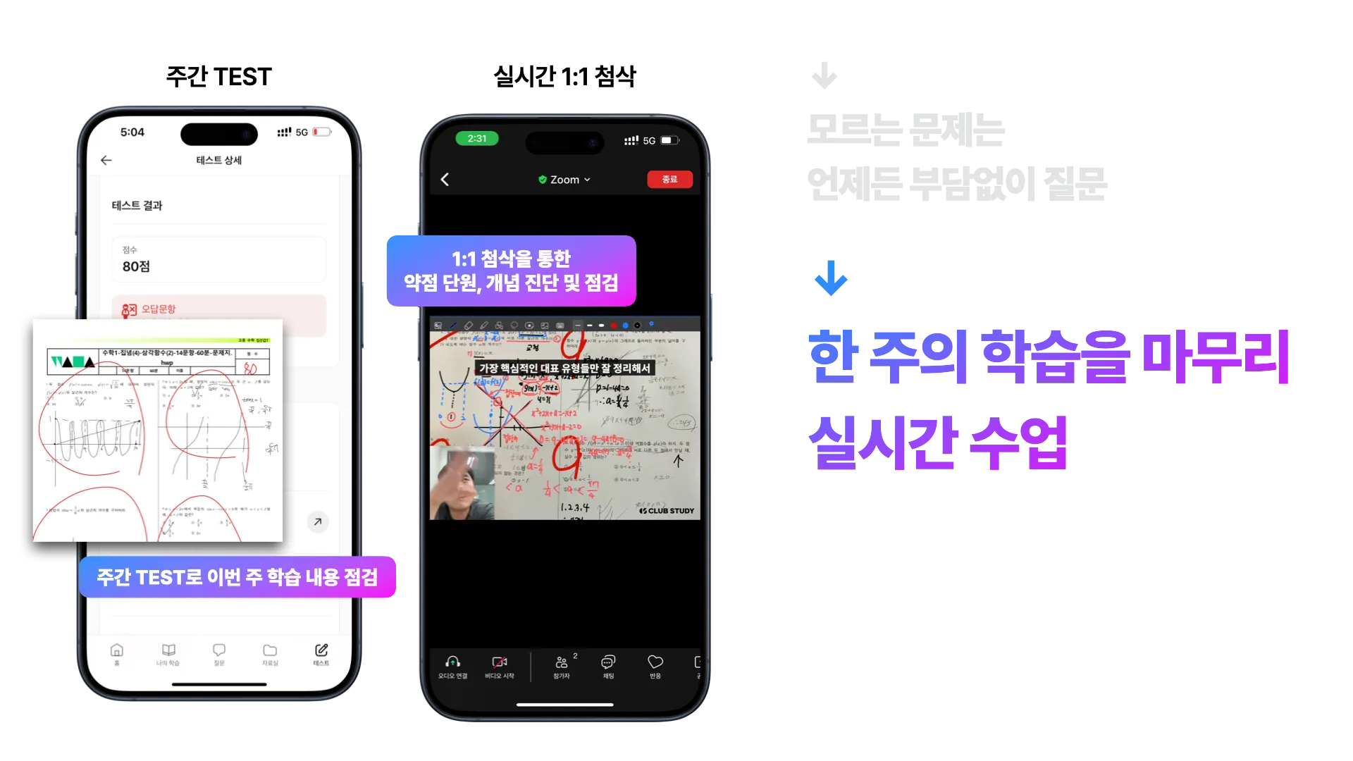 1:1 수업으로 부담없이 질문하고 매주 나의 약점을 점검하며 빈틈 없이 학습해요.